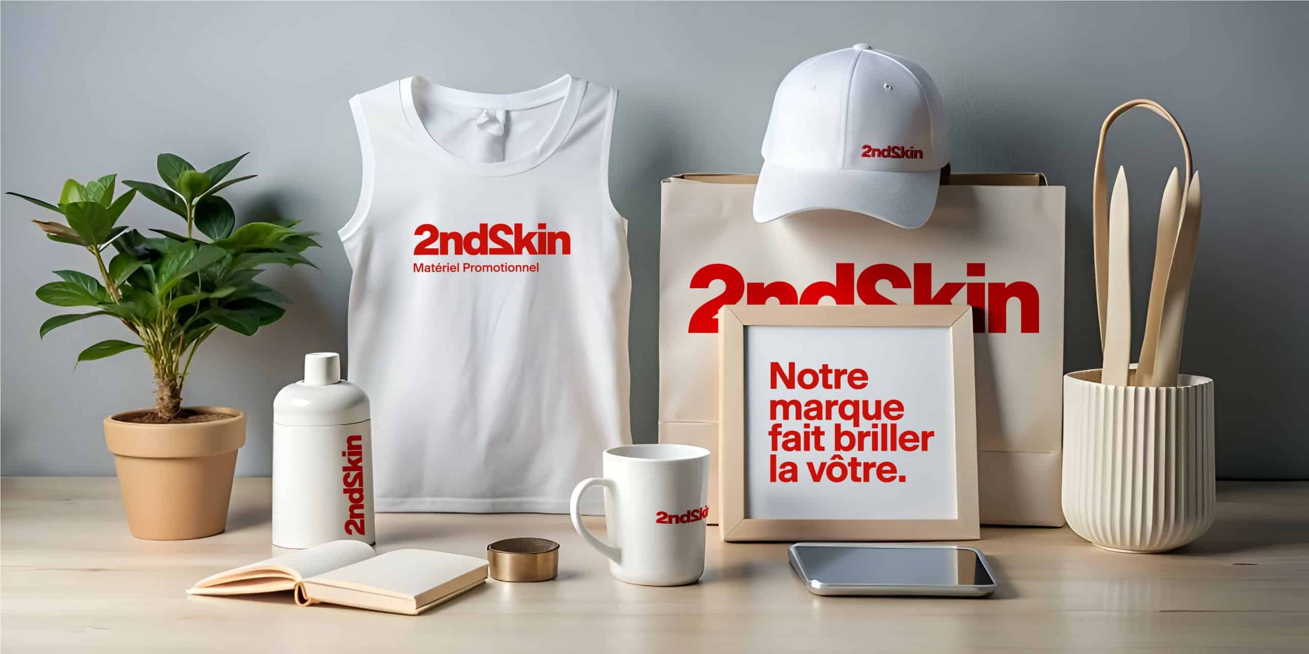 Chez 2nd Skin, nous vous accompagnons dans la création d’articles promotionnels personnalisés qui reflètent vos valeurs et votre professionnalisme. Que vous souhaitiez attirer de nouveaux clients, fidéliser vos partenaires ou remercier votre équipe, nos produits promotionnels sont une solution simple, efficace et abordable pour renforcer la notoriété de votre marque.